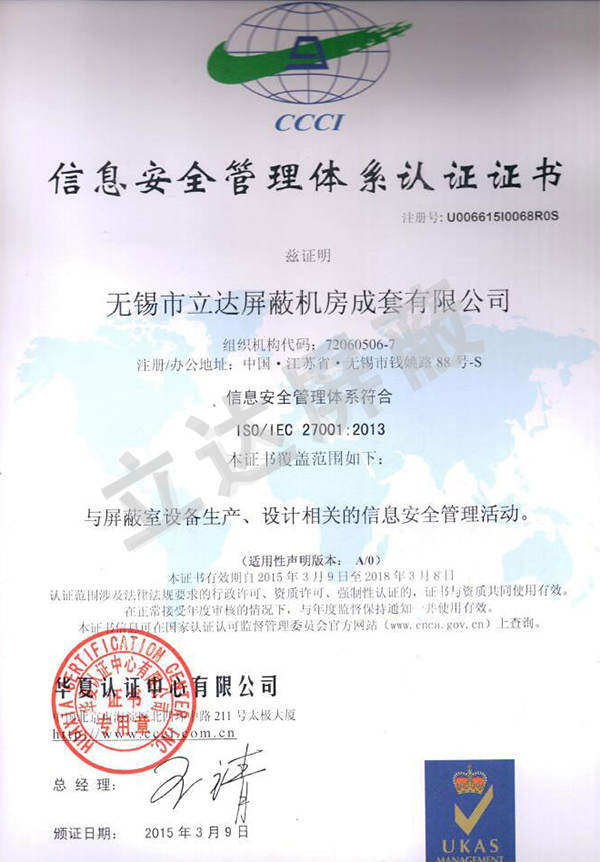 資質證書 專業的電磁屏蔽機房的研發、設計與制造商